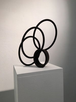 这件Nigel Hall的雕塑以其标志性的几何结构和空间感著称,采用钢材或青铜材质,作品如同三维绘画,将空气与光线纳入构图。它体现了Hall对“空与实”关系的探索,呼应展览对“重量”与“平衡”的主题思考。