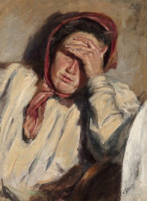 这幅作品展现了Gimeno极具表现力的现实主义风格。画面中的女性安静地休憩,笔触粗犷却细腻,体现了艺术家对生活场景的真挚捕捉。作品不仅是对日常的记录,更是对“绘画即生命”理念的诠释,与展览主题“绘画的颠覆”紧密呼应。