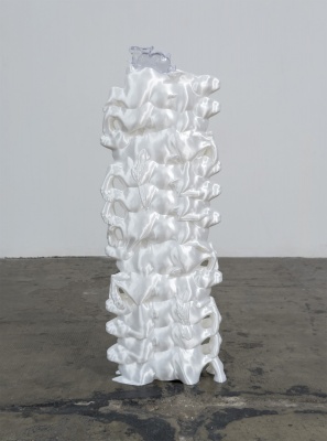 这件作品以数字云端数据为灵感,将虚拟信息通过雕塑语言转化为可感知的物质形态。作品表面呈现出肌理与褶皱,仿佛数据流动凝结成的“肌肉”,呼应展览主题中数字与现实的交融。观众可在作品中感受到工业与科技的冷峻,也能体会到人类情感与欲望的温度。