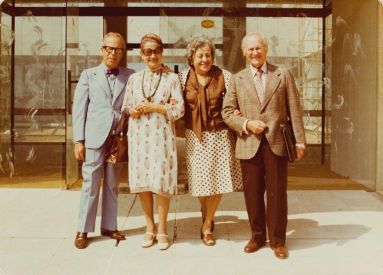 Josep Lluís Sert, Moncha Longás, Pilar Juncosa与胡安·米罗在CEAC前,1975年