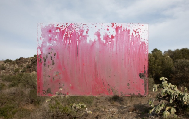 这幅作品以地中海沿岸的自然景观为背景,通过透明表面叠加红色抽象色块,象征着由美洲引入的仙人掌及其所带来的生态与文化变迁。Malagrida巧妙地将历史与环境议题融入画面,呼应展览对“迁徙”与“变迁”的主题探讨。