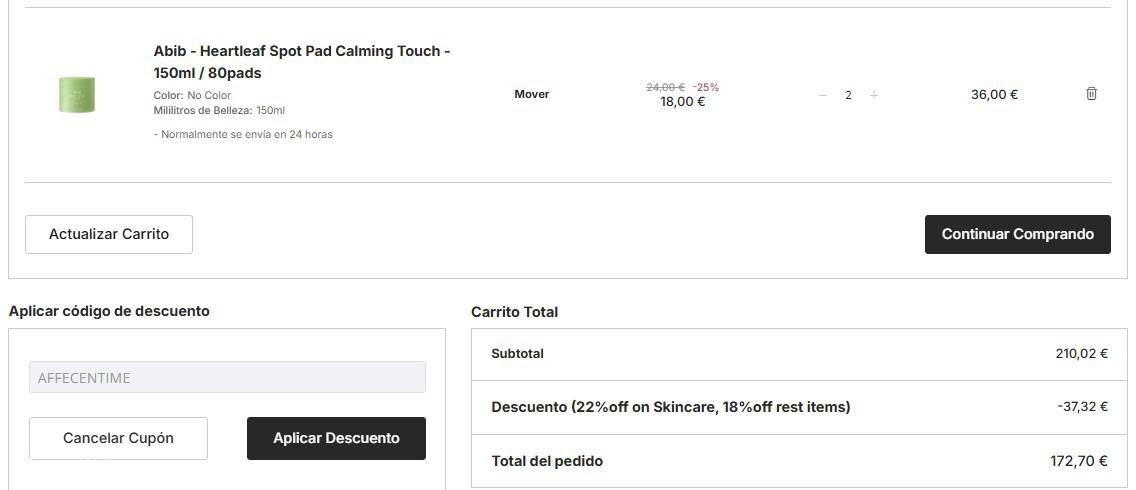 满69€护肤类享78折码!无门槛享82折码:AFFECENTIME