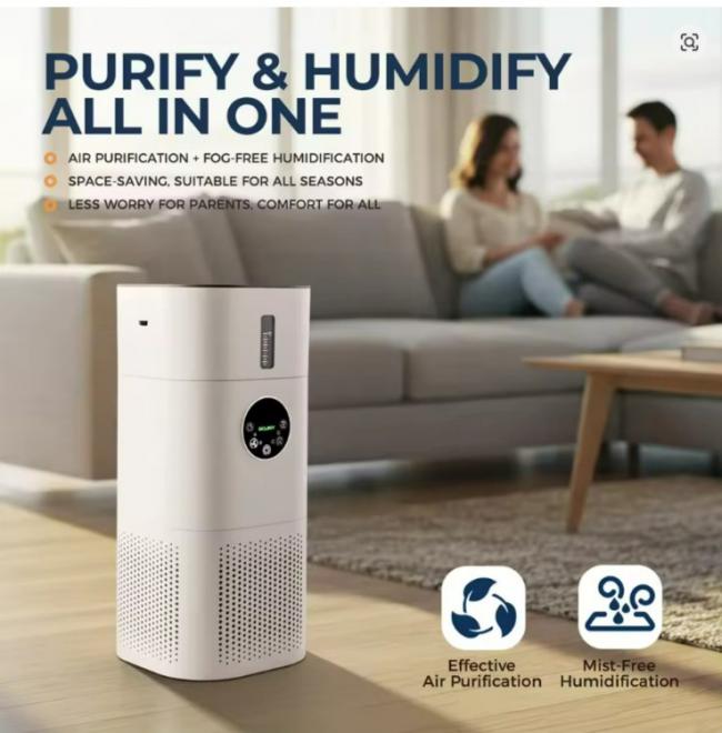 它突破传统单一净化功能,将空气净化与加湿结合,避免净化过程中空气变干,维持室内舒适湿度,解决秋冬季节干燥不适问题。