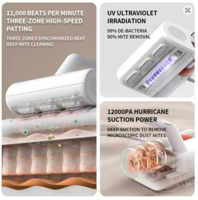 同时,它具备 UV 紫外线杀菌功能,可对接触的织物表面进行深度消毒,进一步降低螨虫残留风险,尤其适合有老人、小孩或过敏人群的家庭。