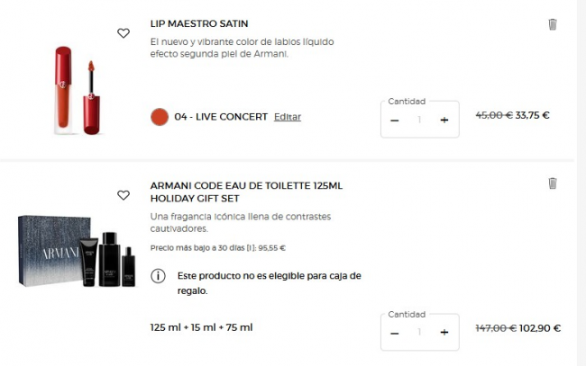 ❄️🎀情人节破价💥阿玛尼官网全场7折起➕送9件礼🎁寄情女士40ml礼盒52€收😍银管唇镜31€!
