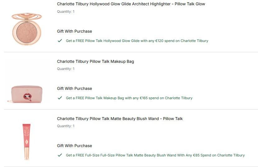 🎁 品牌满85€送正装腮红液#Pillow Talk1支!满120€加赠正装高光腮红1个!满165€再送化妆包1个!