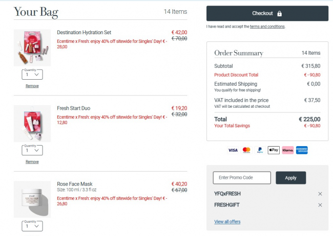 🎁 折后满100€独家加赠正装唇油(价值22€)!送礼码:YFQxFRESH