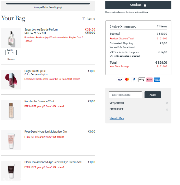 🎁 折后满100€独家加赠正装唇油(价值22€)!送礼码:YFQxFRESH