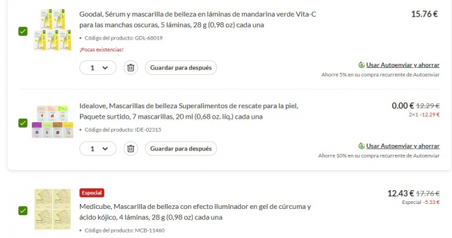 iHerb官网买1送1专区 >>面膜买2送1啦!折合下来1€/片,性价比绝了!