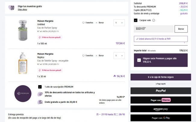 只要14.99€,全年都可以享受折上9折+满20€包邮!最值得买的会员没有之一!