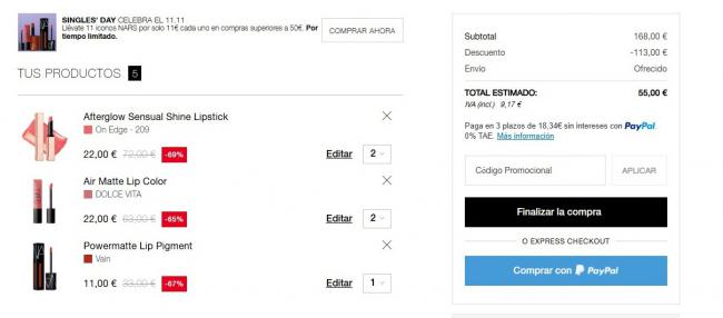 炸裂!NARS折扣专区直达 >> 全场11€!满50€即可享受!