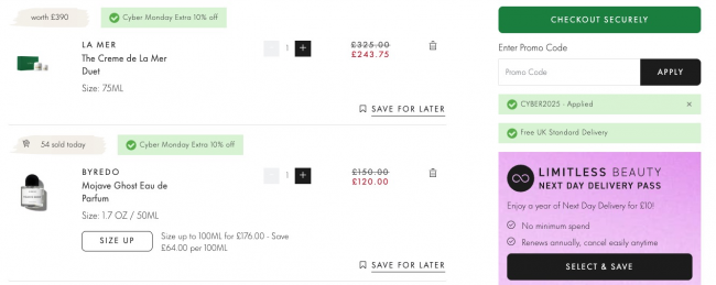 SpaceNK家网一放出王炸,黑五专区 >> 低至7折 + 满120€使用折扣码码 CYBER2025 享折上9折