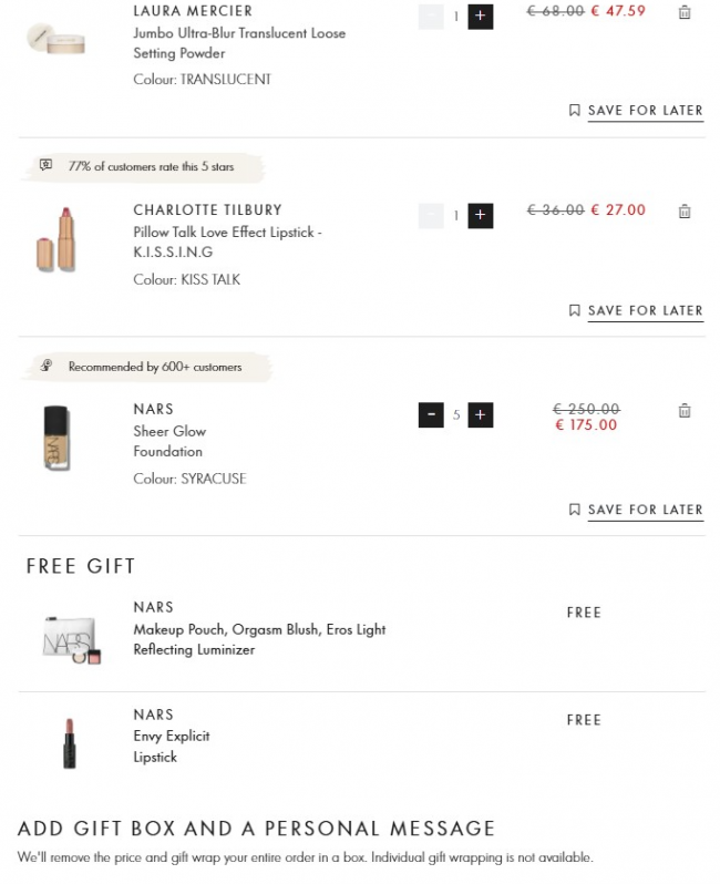 🎁 Nars品牌满105€送豪华3件套!满120€加送正装裸黑管口红!