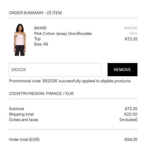🍰SS26上新✨SSENSE全场85折🎗Skims斜肩上衣72€😻收Ganni、西太后、SHUSHU/TONG等!