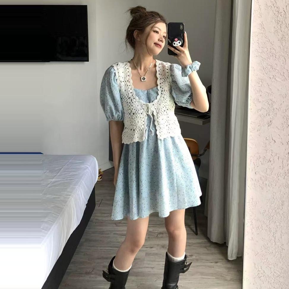 碎花泡泡袖连衣裙