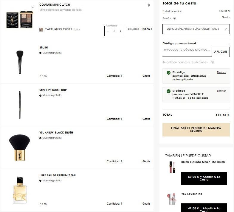 👉 独家满70€送3支化妆刷套组!赠礼码:YFQYSL11