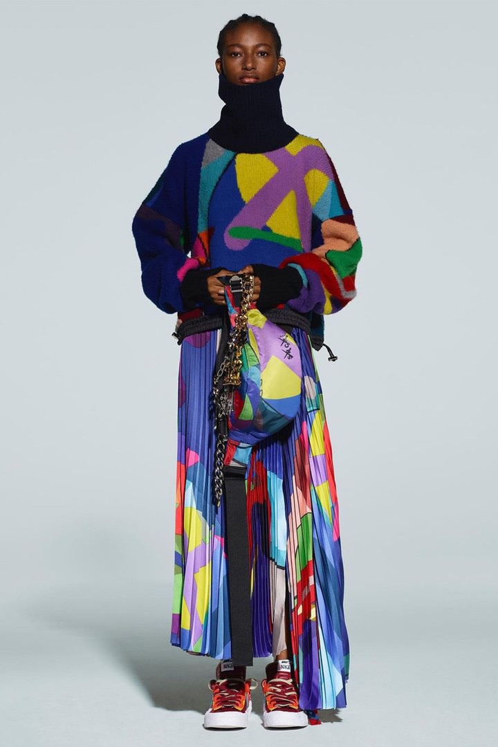 Lookbook内共揭露了长裙、大衣、毛衣、毛呢和羽绒夹克、长裤、手袋、背包、长袜、连帽披肩等多款品项,整体设计上除了运用标志性的缤纷色调呈现外,也将 sacai 擅长的军装气息融入,尤其还特别提及了与 Nike 三方联乘的 Blazer Low 鞋款。