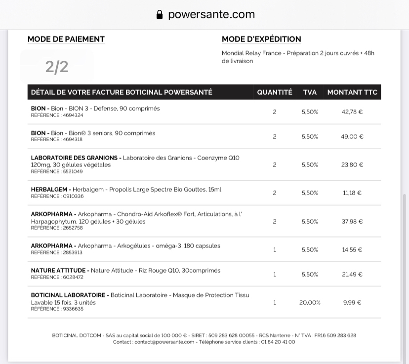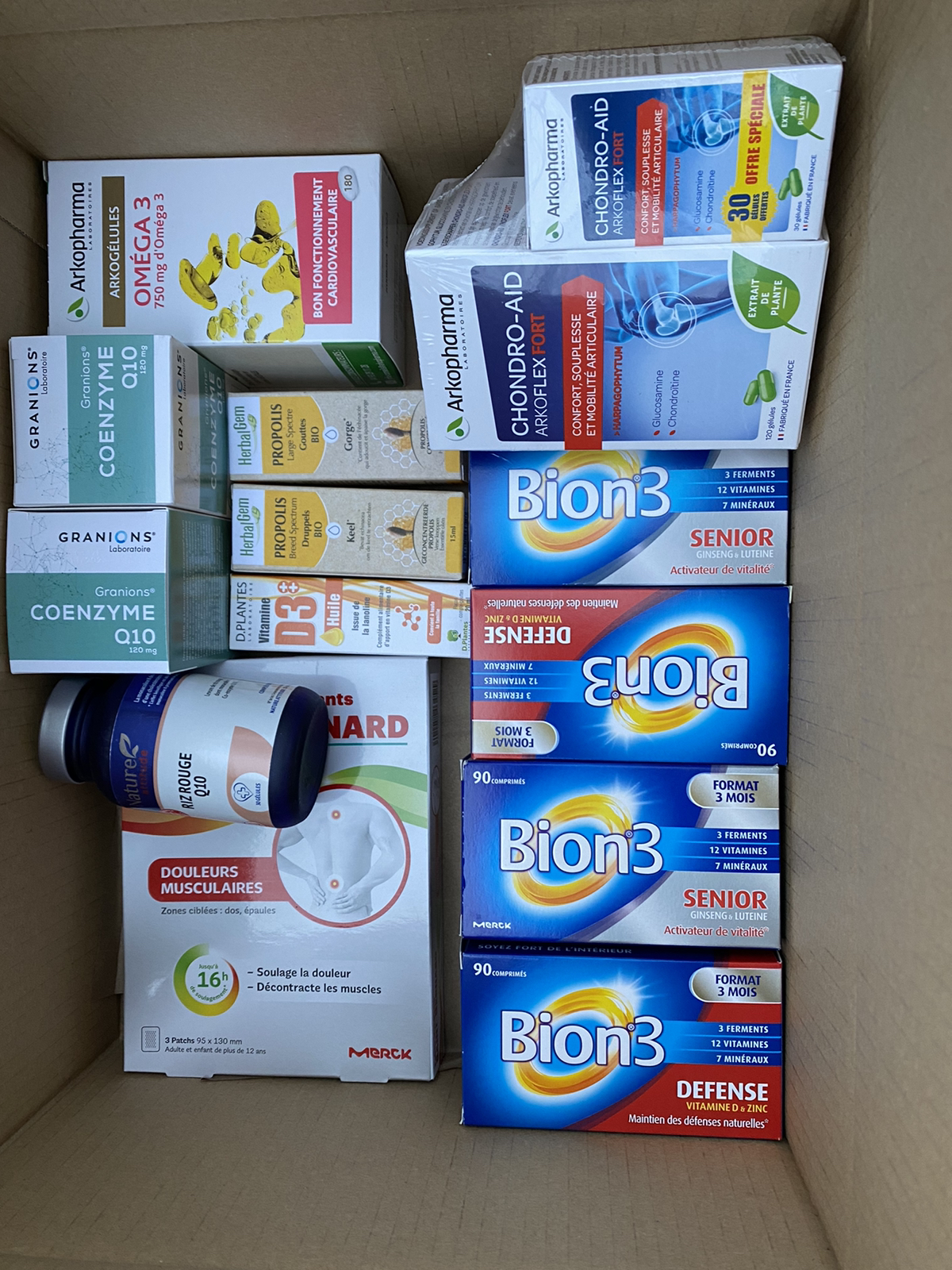 重点来了:Arkopharma CHONDRO-AID 骨胶原蛋白葡萄糖软骨素 治疗关节痛,滑膜炎效果不错,我在powersanté下的单,买了两盒一个疗程,18.99€一盒。开箱只有一盒,我当时竟然没数!结果等到要寄的时候发现怎么少了一盒,打电话找客服,客服说超过7天就不管了!nnd!其他东西都很便宜你怎么不少,偏偏少贵的?