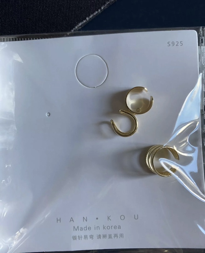 还买了一款耳骨夹 镀金的 一包三个 往下翻实物图